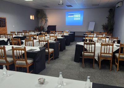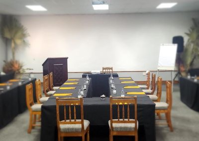 Ideal for intimate meetings and executive gatherings, our Boardroom seats up to 20 delegates with executive tables, comfortable seating, and advanced AV equipment. This small conference venue in Hartbeespoort is perfect for strategy sessions or private celebrations. Enjoy coffee stations, air conditioning, and seamless staff support. Its central location near Hartbeespoort Dam allows for quick breaks to explore nearby activities.